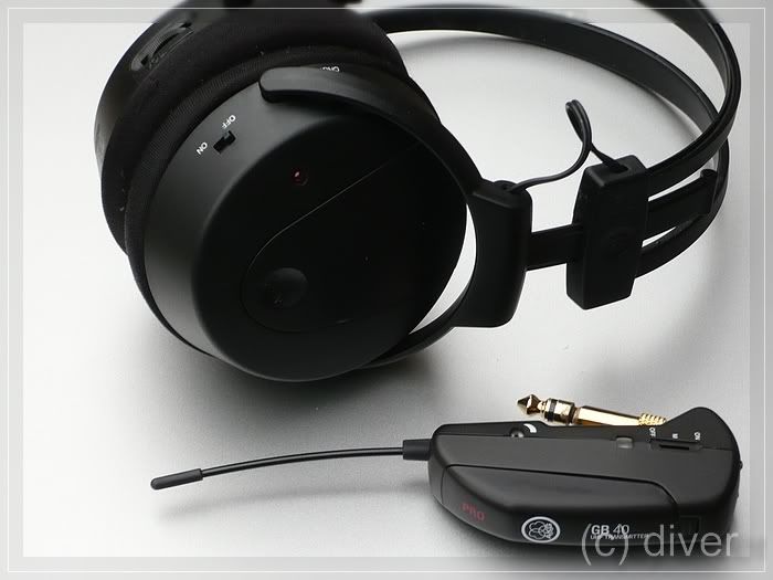 Zgodnie z obietnica kilka fotek mojego rozwiazania sluchawek bezprzewodowych. Uzywam troche innego nadajnika gitarowego, ale tylko dlatego, ze w momencie kupowania nie wiedzialem o ofercie na stronie Thomanna. Nadajnik t.bone jest o tyle lepszy (i tanszy), ze posiada 16 wybieralnych czestotliwosci. Moj nadajnik posiada tylko jedna stala czestotliwosc wiec sluchawki musza albo posiadac mozliwosc wyboru czestotliwosci lub pracowac dokladnie na tej samej czestotliwosci. Gdybym mial jeszcze raz kupowac zdecydowalbym sie na t.bone.