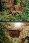 Kilka metrów od tego rysunku na poziomie piwnic w jednej ze ścian odnalezino wykutą/rozbitą skrytkę z resztakami drewna oraz częsciowo zachowaną butelką zawierającą jakieś dokumenty/niestety juz zbrylone/ Prawdopodobnie tylko za pomoca badania węglem C-14 mozna okteślić wiek tego znależiska.ciekawe czy te dwie rzeczy moga byc powiazane?