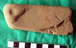 najciekawszym elementem tego kamiennego wyrobu są dwa wgłębienia po obu stronach / nie są one względem siebie współosiowe/ ,jakby panewki służące do mocowania w jakimś zespole.Kamień jest bardzo dobrze obrobiony i wygładzony.Przez to ,ze jest ułamany trudno określić jak wyglądał w całości .Odnoszę wrażenie ,że już gdzieś coś takiego widziałem-tylko nie wiem gdzie i kiedy