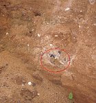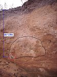 w warstwie piasku fragment obszaru o innej strukturze , może to był jakiś dól do którego dostały się większe kamienie -lub